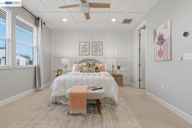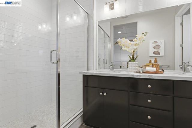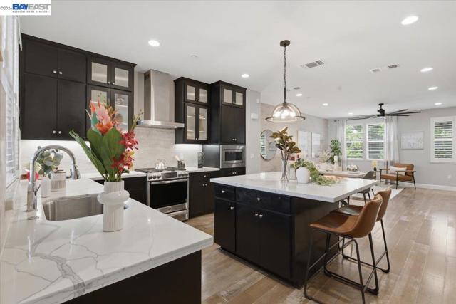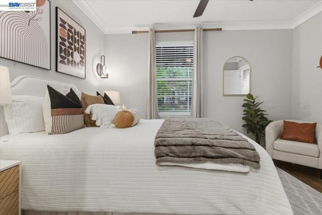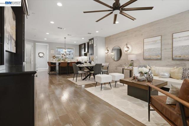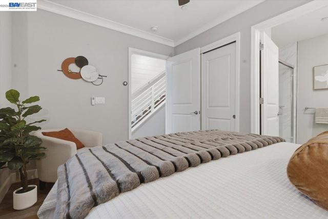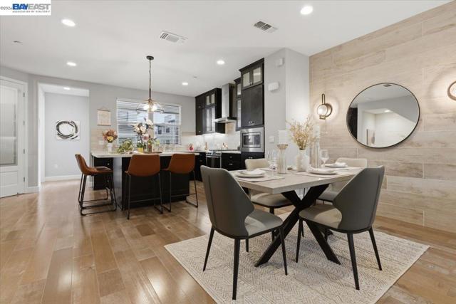 First time on market! Stunning Nuvera MODEL home built in 2021 in Fremont’s desirable Parkmont neighborhood. Northwest-facing end unit with 4 beds and 3.5 baths, featuring $200K+ in upgrades, high ceilings, and abundant natural light. Open-concept layout with spacious living/dining area and a chef’s kitchen with quartz countertops, large island, and stainless steel appliances. Private balcony extends living space. Flexible floor plan includes a first-floor en-suite bedroom—ideal for guests, office, or rental. Expansive primary suite with walk-in closet and dual vanity bath. Includes owned solar, whole-house water softener, triple-zone HVAC with smart thermostats, tankless water heater, hardwood floors, and top-floor laundry. Community offers BBQ area and ample parking. Prime location near BART, Amtrak, Whole Foods, dining, Quarry Lakes, and top schools with easy access to Hwy 880/84. Great opportunity for homeowners or investors.