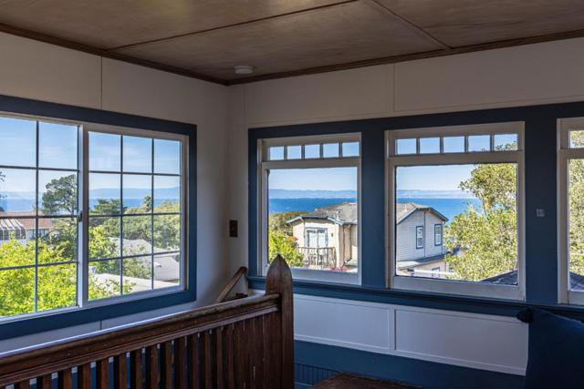 Some homes have a story. This one has chapters. Built circa 1938, this storybook cottage at 724 Cypress Street sits on three lots - one parcel - framed by ancient oaks draped in Spanish moss with sweeping views of the Monterey Bay that stop you mid-sentence. At 1,085 square feet, it's intimate without apology, with hardwood floors, a sun-drenched bay window, and a layout that just makes sense: primary bedroom on the ground floor and a room upstairs with panoramic views for a guest room or creative retreat. A quiet office tucks away for focused work, and an enclosed porch, complete with washer/dryer hookups, adds everyday practicality without sacrificing the cottage charm. Outside, the ironwork gate, the creamy stucco facade, the mature tree canopy - it all feels like Monterey. But here's what makes this property truly rare: the land. Three lots with R-1 zoning and ocean views in a conveniently located neighborhood perched above Cannery Row and the Monterey Bay Aquarium. Whether you dream of remodeling and/or building an ADU or simply living in something out of a storybook, this property holds both possibilities. Opportunities like this rarely come twice on the same street. How will this chapter end?