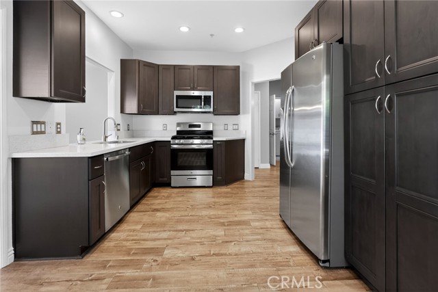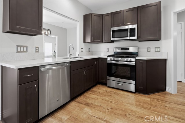 Light-filled, single-level corner end-unit in the highly desirable, gated 55+ community of Palmia — a premier Mission Viejo address offering resort-style living and abundant opportunities for both an active and serenely relaxed lifestyle. This beautifully appointed and elegantly updated 2-bedroom, 2-bath residence has been thoughtfully upgraded throughout with tasteful finishes: updated flooring and baseboards, recessed lighting, a remodeled fireplace that creates a welcoming focal point, and ceiling fans for year-round comfort. The chef-inspired kitchen features soft-close cabinetry, quartz countertops and stainless-steel appliances, while both baths have been elegantly refreshed with new vanities. The spacious primary suite boasts two large closets and an en-suite bath with dual sinks and a glass-enclosed shower. Everyday convenience is enhanced by a separate indoor laundry room with sink, a two-car garage, and major system updates including full re-piping, newer HVAC and water heater. Step outside to a generous private patio artfully balanced with hardscape and lush landscaping — a perfect spot for morning coffee, alfresco dining or quiet reading.Palmia elevates retirement living with an extraordinary collection of on-site amenities designed for social connection, recreation and relaxation. Enjoy a magnificent clubhouse where weekly activities and events create an inviting community atmosphere; take a refreshing dip in the sparkling pool or unwind in the soothing jacuzzi; challenge friends on the pickleball and tennis courts; practice your short game on the 18-hole putting green and private putting course; keep fit in the fully equipped fitness center; or partake in shuffleboard, bocce and library gatherings. With 24-hour security and a calendar full of clubs and classes, Palmia offers effortless opportunities to pursue hobbies, make new friends and stay active.Ideally situated in fabulous Mission Viejo, this home places you close to everyday conveniences and Southern California’s finest attractions. Nearby shopping, dining and cultural venues — including theaters and community events — are moments away, while miles of scenic hiking and biking trails invite outdoor exploration. The sparkling Southern California coastline and world-class beaches are an easy drive, offering sun, surf and seaside dining for weekend escapes. Residents also enjoy membership privileges at Lake Mission Viejo for boating, fishing, beaches, concerts and lakeside gatherings.