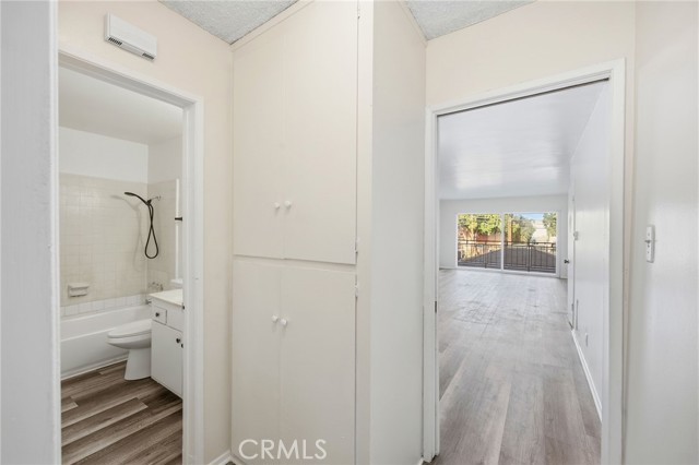 Newly painted with new flooring throughout, this upper-level 1-bedroom, 1-bath condominium is well located in the heart of Inglewood. Situated in a gated complex with controlled access, the community features a secured entry gate with keypad and a secondary remote-controlled driveway leading to the underground parking garage. The unit is accessed by one flight of stairs and includes a security screen door at the entry. Inside, the layout offers a spacious bedroom with a large closet, a full bathroom with shower over tub, and a functional kitchen with ample cabinet space that opens to a comfortable living room. A newer dual pane sliding glass door leads to a private balcony with neighborhood views, providing natural light and indoor-outdoor flow. Conveniently located approximately 2 miles from SoFi Stadium, 3 miles from Hollywood Park, COSM, and the Intuit Dome, and about 3.5 miles from LAX. This property presents a solid opportunity for a first-time buyer, Airbnb or investor seeking a well-located unit with strong rental potential.