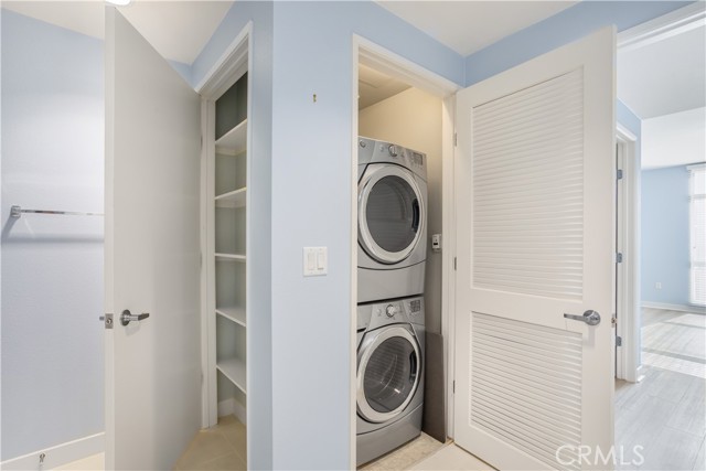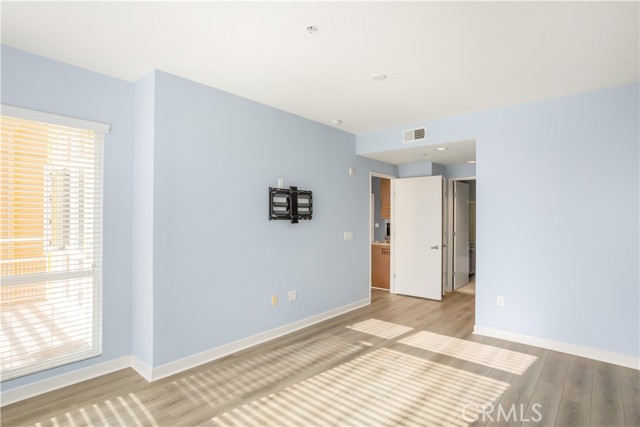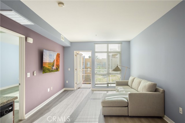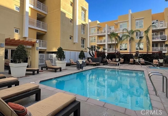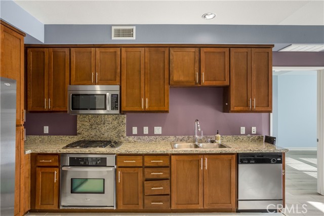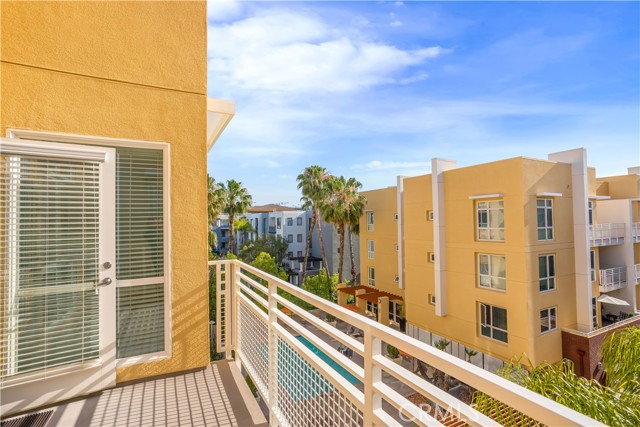 Welcome to Ascent at Warner Center, a modern full-service luxury community built in 2010 in the heart of Woodland Hills. This rare top-floor corner 1-bedroom condo offers approximately 740 sq ft—the largest 1-bedroom floor plan in the building—with no neighbors above and only one shared wall for added privacy and quiet. Enjoy a private balcony overlooking the pool courtyard and greenbelt, a premium view compared to units facing other buildings or parking structures. The open-concept layout is filled with natural light and features a spacious living area and a well-appointed kitchen with stainless steel appliances, maple cabinetry, and granite countertops. The generously sized bedroom includes a walk-in closet and an en-suite bathroom with double vanities and granite counters. Additional highlights include in-unit washer and dryer, central heat and air, recessed lighting, and ample storage. Recent upgrades include brand-new flooring throughout, updated plumbing with a new toilet, refreshed lighting, and a clean in-wall TV power setup. This unit also includes two side-by-side parking spaces (not tandem) conveniently located near the elevator, along with a large private storage unit in a secure room. Residents enjoy resort-style amenities including a pool, spa, cabanas, fitness center, clubhouse, game room, outdoor lounges, BBQ areas, fire pits, dog park, EV charging stations, guest parking, and multiple elevators. Ideally located just moments from The Village, Westfield Topanga, Warner Center Park, dining, entertainment, and major freeways.