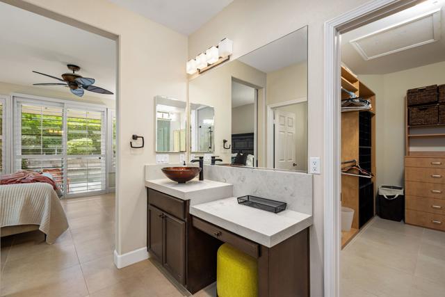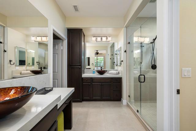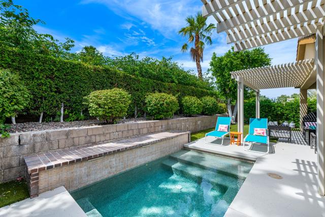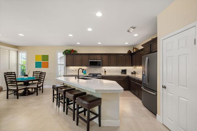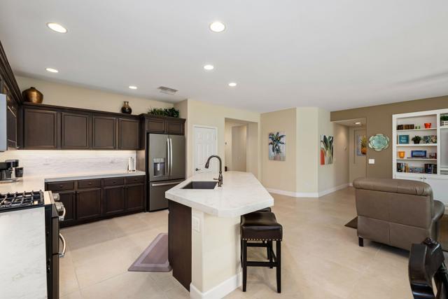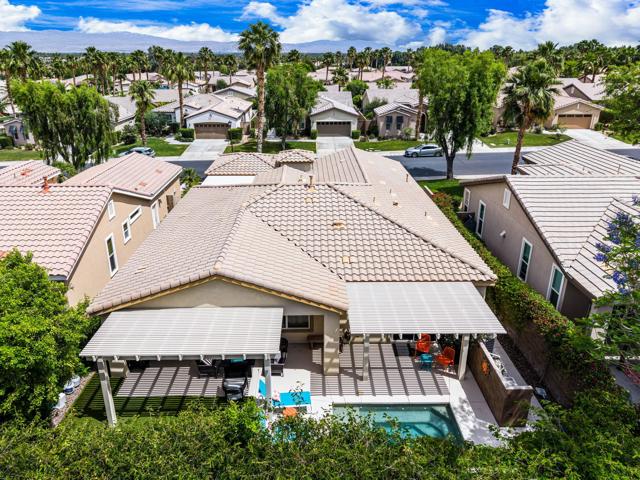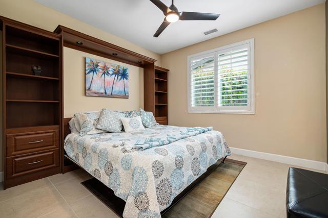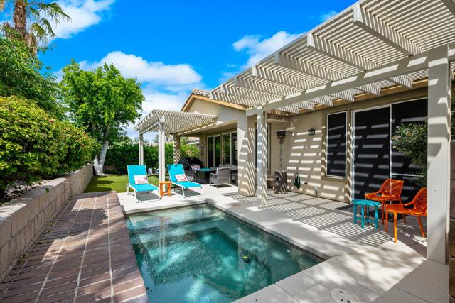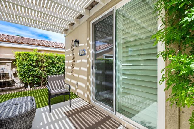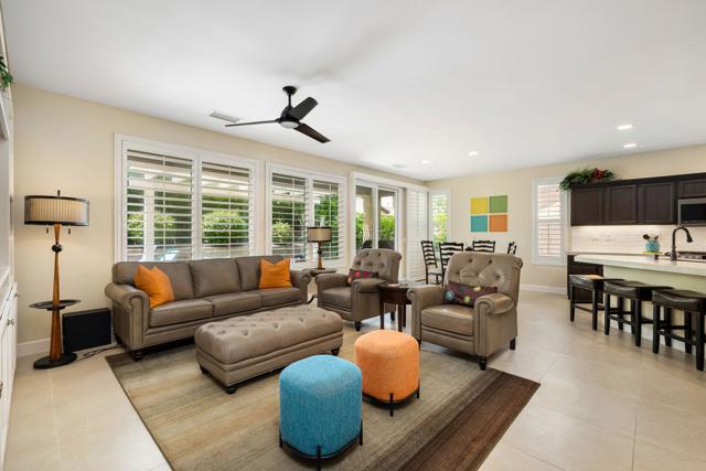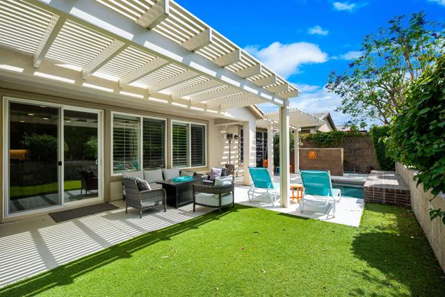 Beautifully upgraded and thoughtfully enhanced, this highly desirable Monterey floor plan in Trilogy at La Quinta offers exceptional flexibility, style, and resort-style living in one of the Coachella Valley's premier 55+ communities, ideally located just moments from the clubhouses and all community amenities. Originally configured as a 3-bedroom home with a detached casita, the property now features a professionally converted den/office, creating a highly desirable fourth bedroom or flex space--ideal for guests, hobbies, or a private home office. The open-concept great room is filled with natural light and anchored by custom built-in cabinetry, while expansive windows with plantation shutters seamlessly connect indoor and outdoor living. The chef's kitchen has been tastefully updated with quartz countertops, a large center island with bar seating, stainless steel appliances, and abundant rich cabinetry, making it perfect for both everyday living and entertaining. The primary suite is a true retreat, offering direct access to the backyard along with a spa-inspired bathroom featuring dual vanities, a walk-in shower, and a spacious custom walk-in closet. Guests will enjoy privacy and comfort with multiple well-appointed bedrooms, including the detached casita complete with its own kitchenette--perfect for extended stays, visiting family, or multigenerational living. Step outside to your private backyard oasis where a covered patio, pergola, spa, and lush mature landscaping create a peaceful and secluded environment--ideal for relaxing or entertaining under the desert sky. As part of Trilogy at La Quinta, residents enjoy access to world-class amenities including a championship golf course, resort-style pools, a state-of-the-art fitness center, tennis and pickleball courts, on-site dining, and an active social calendar with clubs, events, and activities designed for an exceptional lifestyle, making this home a perfect blend of comfort, versatility, and premier desert living. This home can also be offered turnkey furnished under a separate contract.