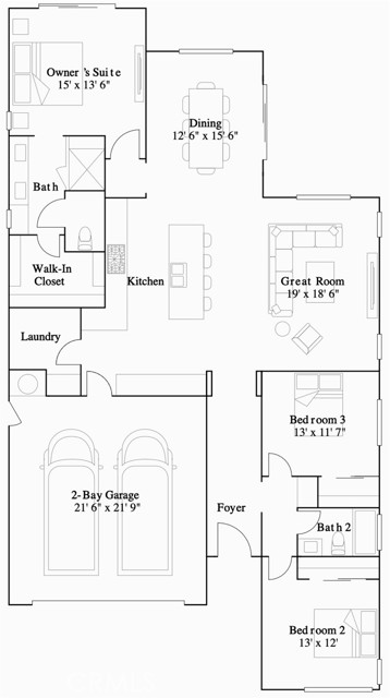 MODEL HOME! Includes Designer Features! This new single-level home features a modern and low-maintenance layout. Two bedrooms are located off the foyer, leading to an open-concept floorplan that combines the kitchen with the living and dining areas. The luxurious owner’s suite is tucked into a private corner at the back of the home, offering access to an en-suite bathroom and roomy walk-in closet.