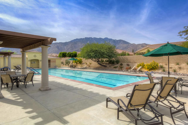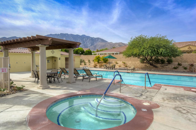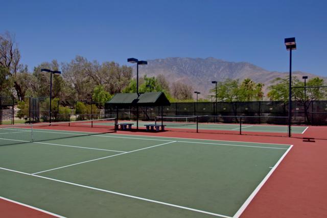 Immaculate. Choice corner lot on desirable cul-du-sac with a great mountain view. This Palm III residence has an open Great Room floor plan with a fireplace. The large open kitchen has granite counter tops, a large center island and newer stainless appliances. Two spacious bedrooms plus den and/or office with double glass doors. Nice separation ofbedrooms affords privacy. Large master suite has 2 large closets, large oval soaking tub &separate shower. Also, newer washer, dryer and energy-efficient HVAC. Four Seasons is adesirable, gated, active 55+ community offering 3 pools, several spas, outdoor BBQ area, tennis,bocce ball, hand ball, paddle ball & basketball courts. The fully staffed lodge offers a state-of-the-art fitness center, aerobics, computer lab, ballroom, game room & library. Always a calendar full of social events. All this and only a 10-minute drive to the heart of Palm Springs Villagebustling with excitement.