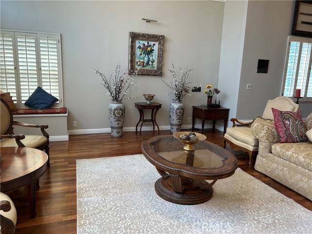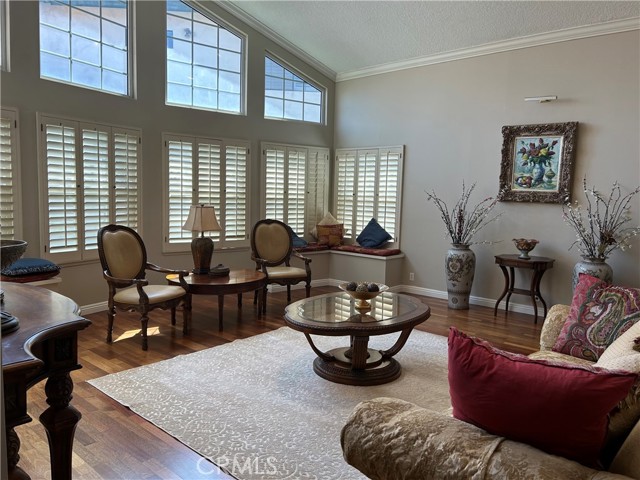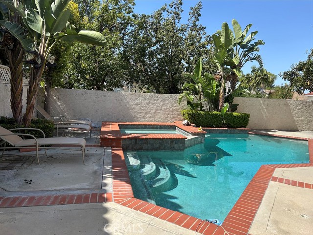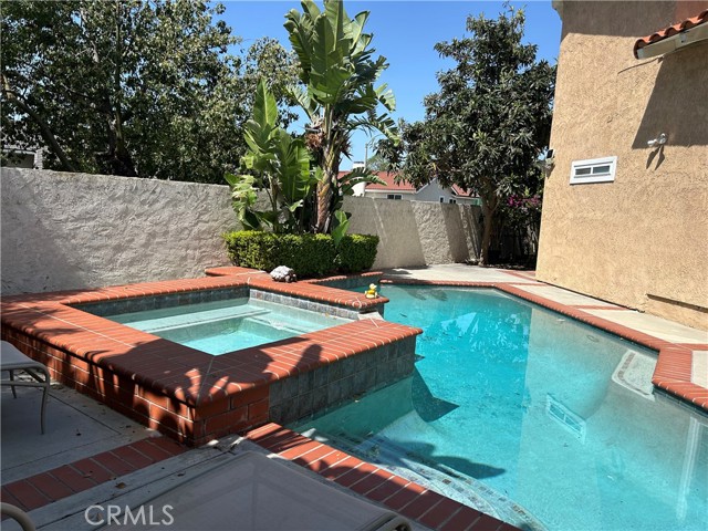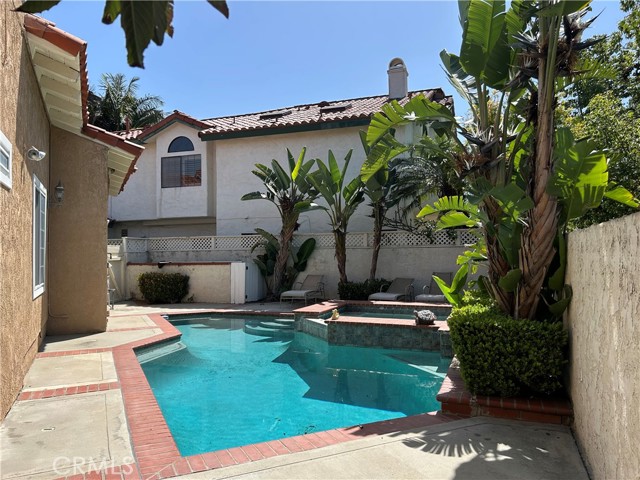This stunning classical home is situated in a great & safe community. Specious front and back without neighbors in the back. 5 bedrooms, 4 ½ baths, formal living & dining room, family room, wet bar, kitchen with breakfast nook. Inside laundry room with separate sink. Private Pool & Jacuzzi on side yard. Community provides public tennis courts, pool and spa. Custom soundproof windows throughout. Vinyl windows and Patio Cover. Newer cook top, microwave/convection oven, and Bosch dishwasher. European Junker Hardwood Floors, 6 inch base boards throughout home, crown molding, and double paneled doors. Landscaped with mature Avocado tree, orange tree, peach tree, loquat tree and lush shrubs and flowers. 2 fireplaces, 2 Skylights, and Vaulted Ceilings and Ceiling Fans throughout. Close to freeway, shopping centers, restaurants & award-winning schools.