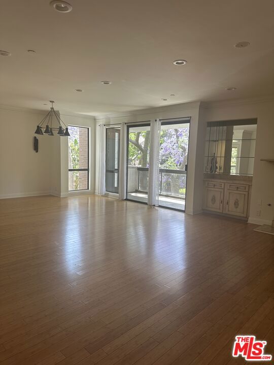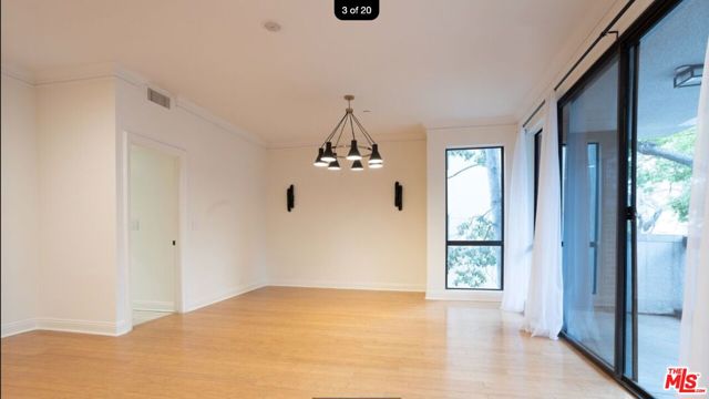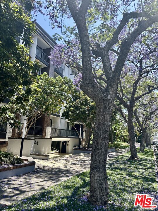 Prime Beverly Hills street. Discover your new home in this bright, elegant front-facing condo. Just steps from the vibrant and artistic Burton Way, enjoy easy access to the Golden Triangle or Beverly Grove, offering premier shopping, dining, and entertainment within walking distance.This nearly 2,100 sq ft residence features soaring 9-foot ceilings, crown molding, and natural bamboo flooring throughout. The renovated kitchen includes quartz countertops, soft-close cabinets, a top-of-the-line Thor gas range, a cozy breakfast nook, and a private balcony off the kitchenperfect for morning coffee.The open-concept great room, complete with a gas fireplace, opens to a second spacious balcony off the living room facing beautiful purple jacaranda trees. The private primary suite is tucked away in the rear, boasting a walk-in closet and a luxurious bathroom finished with travertine and marble, dual vanities, and a separate soaking tub and shower.Additional amenities include three assigned parking spaces, in-unit washer and dryer, ample storage, central air conditioning and heating, plus five-day on-site concierge and security.