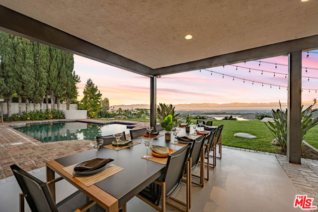 Turnkey, fully furnished home available for immediate move-in. Lease terms are flexible, with options ranging from one to six months initially and extensions available as needed. Security deposit varies by lease length. Seeking the right tenant for this exceptional furnished property. This nearly 5,000 sq ft executive home sits at one of the highest points in Encino Hills, offering rare privacy and sweeping lake views. With 4 bedrooms and 5 bathrooms, it features a resort-style yard with pool, spa, sauna, and dual bar areas. The primary suite includes an Alaskan king bed and a private patio with outdoor seating overlooking the lake perfect for sunrise coffee or sunset views. Beyond the gated entrance, the home welcomes you with a beautiful foyer that opens into an elegant formal living room, thoughtfully upgraded with modern furnishings and new window treatments. Adjacent is a brand-new dining room seating eight, framed by bay windows with views of the pool and the lake beyond. The kitchen, while not remodeled, is charming, fully stocked, and includes a casual breakfast area.A second living space functions as an entertainer's den, featuring a pool table, full bar, large TV, and ample seating. This flexible layout is ideal for gatherings or relaxed evenings in.The home is especially well-suited for families and multi-generational stays, offering a first-floor bedroom with a queen bed, private ensuite bathroom, and separate exterior entrance perfect for guests who prefer to avoid stairs. A three-car garage adds convenience.Upstairs are three additional bedrooms, including a spacious suite with a king bed, TV, and ensuite bath; a versatile office/guest room with a queen sleeper sofa; and an expansive primary retreat. The primary suite features an Alaskan king bed, sitting area, fireplace, dual ensuite bathrooms, dual walk-in closets, and a large private balcony with seating overlooking the lake.Outdoors, the property truly shines. The rare lake views virtually impossible to find without direct lake frontage set the backdrop for a resort-style yard with a large pool, spa, private sauna, expansive lawn, string lighting, outdoor dining for large groups, and two built-in bar areas with BBQ stations. It's an exceptional setting for entertaining, relaxing, and enjoying one of the best views in Encino.Pet-friendly, private, and ideal for memorable stays, this home offers a rare combination of space, views, and lifestyle.