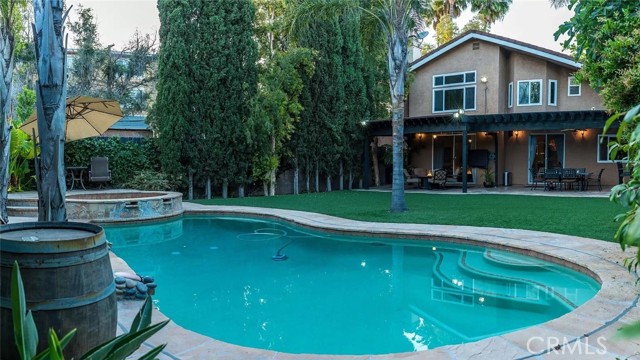 STUNNING 4 BEDROOMS, 3 BATHROOMS IN THE PRESTIGIOUS AREA OF SHERMAN OAKS. HIGH- QUALITY CONSTRUCTION. HUGE GRASSY YARD. POOL AND OVERSIZE JACUZZI. SOARING CEILINGS, HARDWOOD FLOORS, STATE OF THE ART KITCHEN WITH HIGH-END JENNAIR PRO APPLIANCES, SKYLIGHT, FIREPLACE IN FAMILY ROOM. DEN/LOFT AREA OVERLOOKING THE LIVING ROOM. 2 CAR ATTACHED GARAGE. LIVE IN STYLE AND ELEGANCE!
