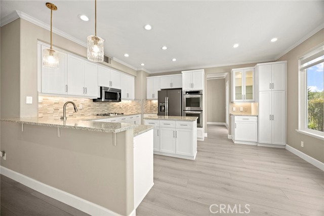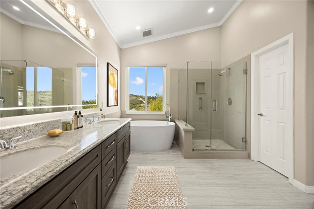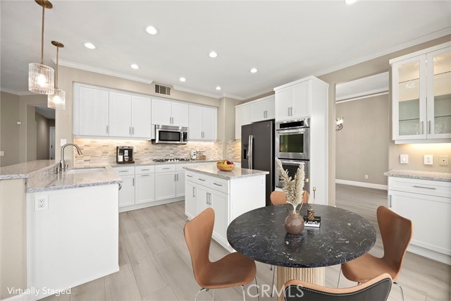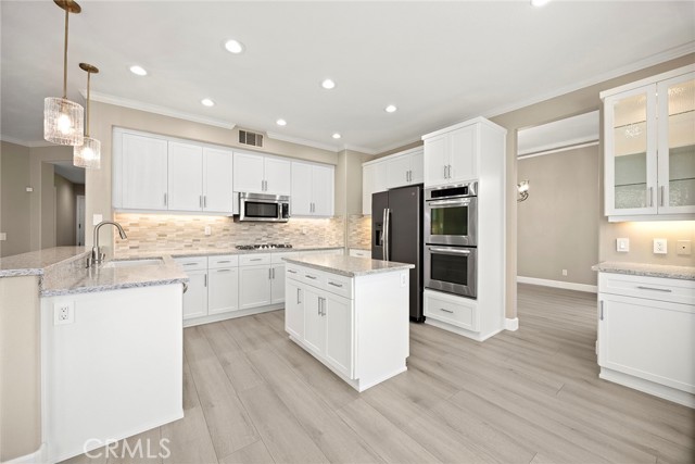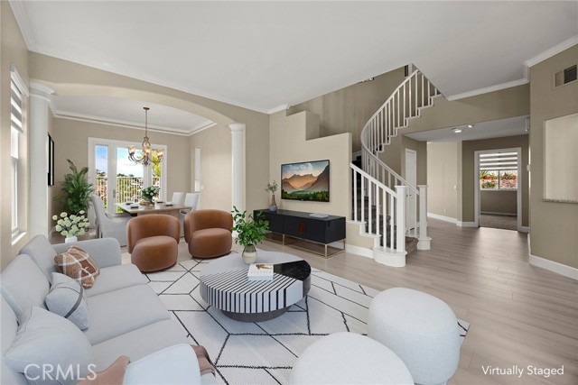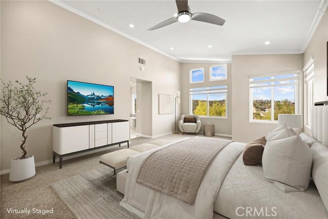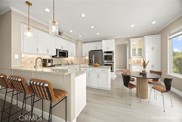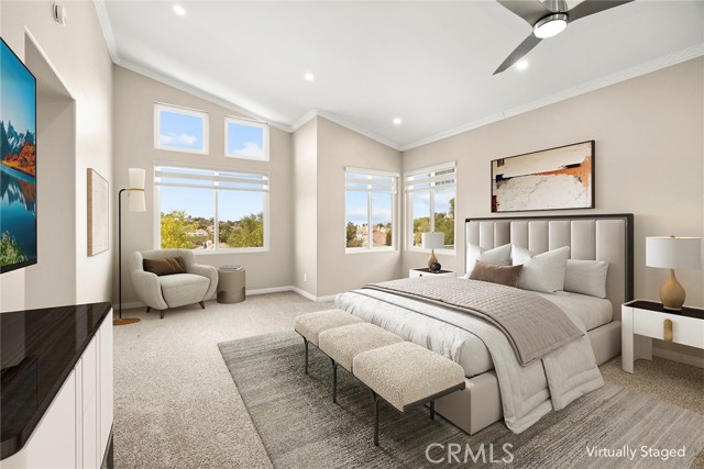 Now available for lease, this beautifully reimagined home in the sought-after Vista Pointe community offers an exceptional blend of space, comfort, and scenic surroundings. This lovely residence has been extensively updated and is move-in ready, featuring 6 bedrooms and 5 bathrooms—including a convenient main-floor bedroom and full bath. Enjoy stunning canyon vistas with glimpses toward Laguna Beach from multiple rooms, creating a peaceful backdrop for everyday living. The layout is both functional and inviting, with a formal dining room and two expansive living areas on the main level—ideal for hosting or relaxing. The upgraded kitchen has been thoughtfully redesigned with refreshed cabinetry, new drawer construction, and elevated finishes that bring both style and practicality to the space. Upstairs, the primary suite serves as a private retreat, complete with a spa-style bathroom featuring a sleek frameless glass shower, freestanding soaking tub, and dual customized walk-in closets. A generously sized media or bonus room adds flexibility, outfitted with brand-new built-ins and quartz waterfall counters—perfect for work, study, or entertainment. Additional features include a three-car garage, enhanced driveway with pavers, and a low-maintenance yard finished with artificial turf. The outdoor space is ideal for unwinding, highlighted by a newer six-person hot tub and custom lighting. Inside, the home is equipped with all-new Milgard windows, custom window shades, motorized exterior sun shades, upgraded entry doors, fresh paint throughout, and newer HVAC and water heating systems. Located in a prime Aliso Viejo neighborhood, the property offers easy access to top shopping destinations, dining, major freeways, John Wayne Airport, nearby trails, and beaches. A rare leasing opportunity offering size, upgrades, and a highly desirable location—all in one exceptional home.