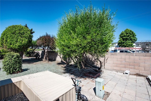 Enjoy low-maintenance backyard landscaping with mature trees providing shade and privacy.