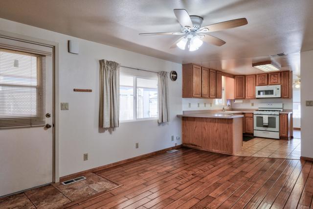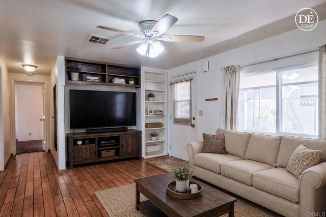 Welcome home to this charming 2-bedroom, 2-bath, 1,416 sq ft residence nestled in a small, well-maintained, gated, resident-owned senior community. Enjoy some of the lowest space rent around at just $630.33 per month. Inside, you’ll find beautiful natural wood cabinetry and floors, a spacious kitchen, and multiple living areas including a living room, dining room, and family room—perfect for both everyday comfort and entertaining. Ceiling fans in every room and a generously sized primary bedroom add to the home’s appeal. Paid solar panels provide energy efficiency and long-term savings. Step outside to enjoy a cozy brick side yard, ideal for relaxing or hosting guests. Additional features include a storage shed, wheelchair ramp for accessibility, and a large carport that easily accommodates two vehicles. Residents enjoy access to community amenities such as a refreshing pool, welcoming clubhouse, and a dedicated dog park.