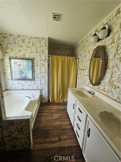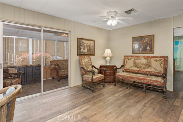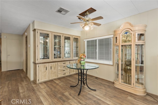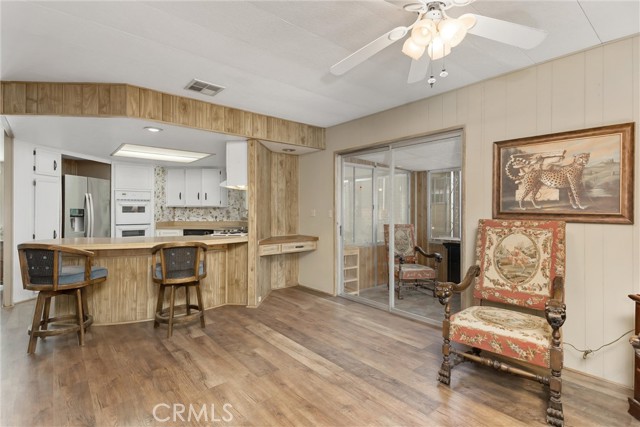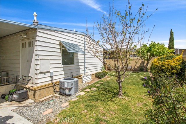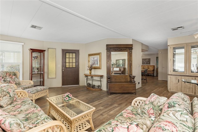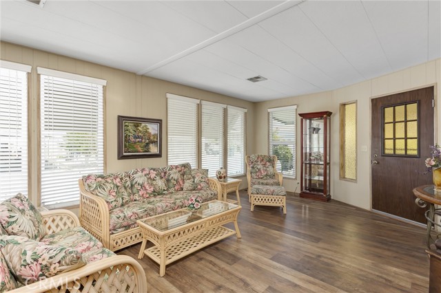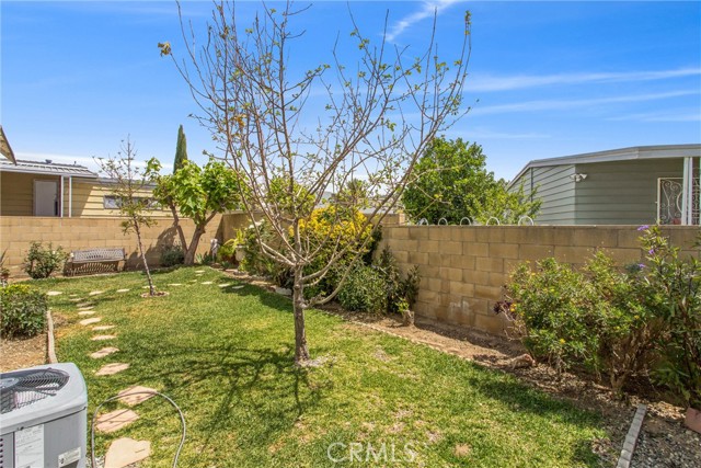 STOP. STOP RIGHT NOW! Look at ME! Enter the park and I'm the 3RD home on the right. #27. (PLZ TAKE YOUR TIME TO READ ABOUT ME!) I'm the GORGEOUS ONE...with roses and landscaping. Step inside and see how Beautiful my soft colors are in my large, spacious living room with formal dining area & built in China Hutch. Love to cook & entertain? CIRCULAR KITCHEN with 4 breakfast bar stools invite conversation, company or just plenty of room to spread out and cook. I have a den/family room off the kitchen that has a sliding glass door to a roomy Enclosed Patio Room. Two large bedrooms, One bathroom has a tub/shower combo and the Primary has a walk-in shower and separate soaking tub, with double sinks. NEWS ALERT! Don't miss ALL NEW Dual Paned windows throughout and a gentle, soft, inspiring & relaxing Mural that was hand painted in Primary Suite to bring joy and provide calmness. I will restore the bedroom if you do not like the painting. Exit my back door through the Patio Room and you will smile. I guarantee it. I have a secret, private little covered patio with a table & 2 chairs just inviting you to relax. Ahhh, but no...Go down my steps and let your eyes grasp the beauty of a stunning, secluded, landscaped, private back yard, fruit trees include fig, apply, & peach. Check out my pictures and get so excited that you call my Agent to see me today! (Ser#A/B33223)