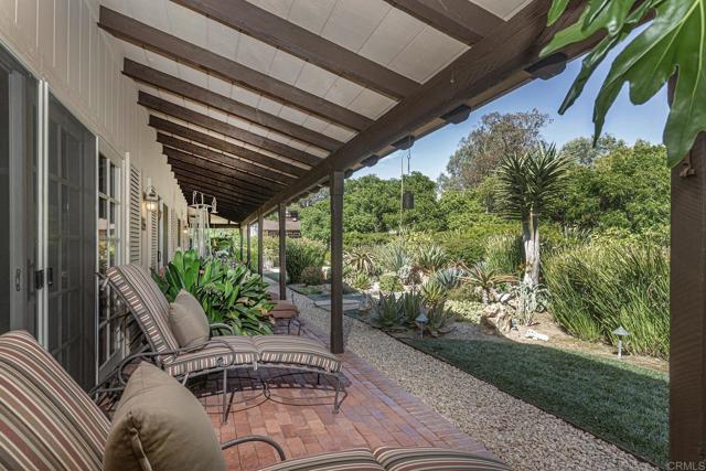 Rarely does a property of such historic distinction come to market in the Covenant. Designed in 1954 by Master Architect Edgar V. Ullrich, this Modern Custom Ranch residence embodies classic California living within a peaceful, rural setting — beautifully preserved, meticulously restored, and protected under the Mills Act, offering potential property tax advantages. Situated on 2.72 usable acres, the 1,943 sq ft single-level main residence includes three bedrooms, all thoughtfully arranged on one level. Restored in 2014 and maintained in excellent condition, the property also features a 1,197 sq ft guest house converted from a historic barn, offering two bedrooms, a great room, and a full bath. The residence and its accessory buildings are listed on the San Diego County Historic Landmark Register, underscoring their architectural significance and heritage value. The grounds are equally compelling, featuring a beautifully maintained garden and backyard, along with two enclosed pastures, enhancing the property’s authentic ranch character and usability. An adjacent 2.89-acre parcel is available exclusively in conjunction with the purchase of the primary 2.72-acre property and will not be sold separately. Total offering price for both parcels: $8,700,000. This property is a well-preserved, architect-designed Modern Custom Ranch estate that embodies the original vision of Rancho Santa Fe—combining architecture, land, and lifestyle into a cohesive historic environment. A rare opportunity to own a meaningful and enduring piece of Rancho Santa Fe history.