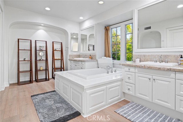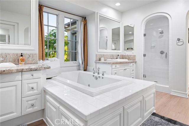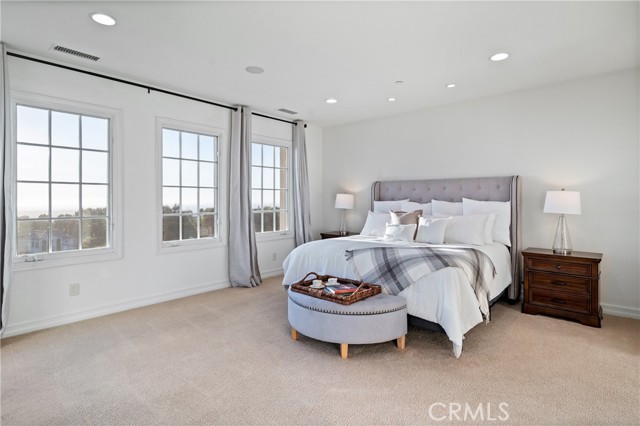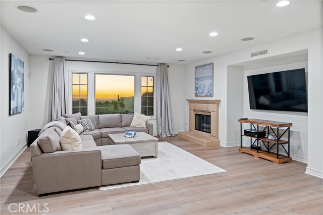 The luxurious upstairs primary suite showcases sweeping views from every window, a spa-like bath with a jacuzzi tub, and a private balcony overlooking the Orange County Riviera—perfect for enjoying romantic sunsets or peaceful sunrises.