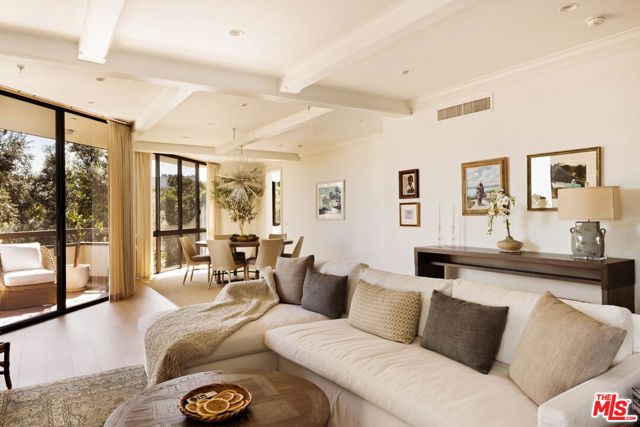AVAILABLE FOR SALE AND FOR LEASE Welcome to Unit 354, now Priced to Sell! A meticulously renovated 2-bedroom + den/office/media room at the iconic IV Seasons Condominiums in the heart of Beverly Hills. Enjoy the ultimate in luxury and convenience with 24/7 doormen, valet parking, and access to the building's pool, gym, and spa, all complemented by proximity to Beverly Hills' renowned schools, restaurants, and designer shops on Rodeo Drive, as well as Whole Foods and Erewhon. This sun-filled, southeast-facing residence was fully renovated in 2022, creating a completely turn-key experience. A grand foyer sets an impressive tone upon entry, with wide-plank wood floors leading into a dramatic living room featuring high ceilings, exposed beams, a fireplace, and sliding doors to a tranquil private patio, perfect for entertaining or relaxing in privacy. The dining area comfortably seats eight and flows seamlessly into a sun-flooded eat-in kitchen equipped with premium Wolf and Bosch appliances. The den/office offers flexible space for a home office, guest room, or media room, while the second bedroom features an ensuite bath and abundant natural light. The primary suite, occupying a private wing at the end of a hallway lined with closets, is a serene retreat. Its spa-like ensuite bathroom includes double vanities, a built-in dressing table, a freestanding soaking tub, and an oversized shower. Boasting one of the building's most spacious layouts, this elegant unit combines sophisticated design, modern upgrades, and a prime Beverly Hills location. A rare opportunity for refined living at the IV Seasons.