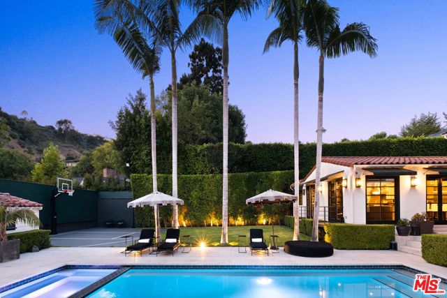This stunning California Mediterranean-style home has been impeccably updated, offering luxury and modern conveniences. This home features 3 bedrooms, 5 bathrooms, and a brand new 360 sq.ft. garage ADU complete with a bathroom ideal for guests or as a private workspace. Indulge in resort-style living with a half-court basketball setup, a newly plastered and tiled pool, and 500 square feet of lush backyard grass. The pool lounge boasts a TV and fireplace for relaxed evenings outdoors, while the covered bar area, outfitted with in-ceiling heaters and a TV, invites year-round entertaining. Inside, the home exudes elegance and state-of-the-art technology. The living room features a roll-down movie screen and a 4K projector, making it a true media haven. The primary bedroom is a personal retreat with its own TV, movie screen, 4K projector, steam shower, and two massive closets. Each bedroom is equipped with its own TV and Apple TV for entertainment. The entire house is integrated with Control4 smart home technology, allowing you to control TVs, lights, HVAC, pool heater, security cameras, and the front gate directly from your phone. With two laundry areas one upstairs and one downstairs this home offers the ultimate in convenience and sophistication. This is luxury leasing at its finest, blending Mediterranean charm with cutting-edge amenities.