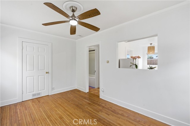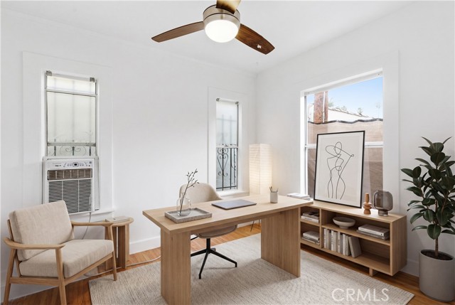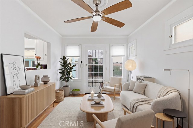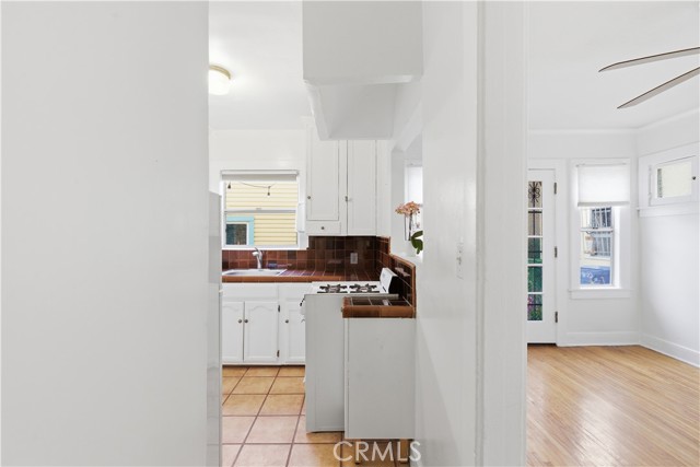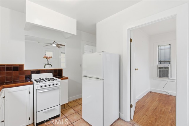 This charming Spanish-style Casita -- offers a sense of privacy and comfort throughout the home. Tucked away at the rear of the property behind the main house, this stand-alone home offers a peaceful, private escape from the city’s energy. Inside, you’ll find beautiful hardwood floors that bring warmth and character throughout. The living area is bright and inviting, with a flexible layout that’s easy to personalize—whether you’re hosting a guest or enjoying a quiet night in. The home features a full kitchen filled with natural light, complete with ample cabinet space, a refrigerator, and a retro gas stove. A cozy breakfast nook adds charm and can easily double as workspace. The bedroom is comfortably sized to accommodate a twin or full bed and is set apart from the main living space, offering a quiet place to unwind at the end of the day. Though compact, this home feels secure, intimate, and entirely your own— a calm, tucked-away atmosphere that contrasts beautifully with the vibrant quiet neighborhood just outside.