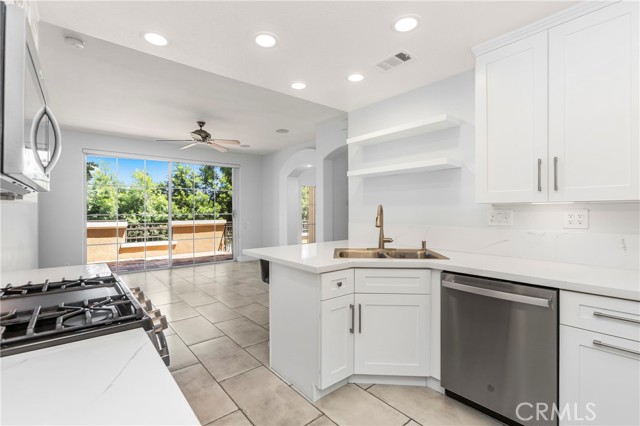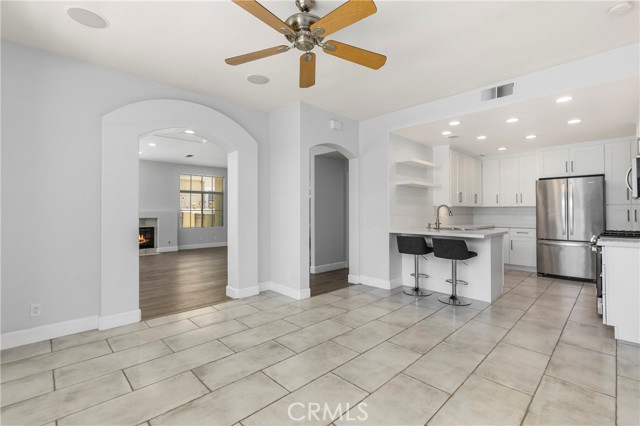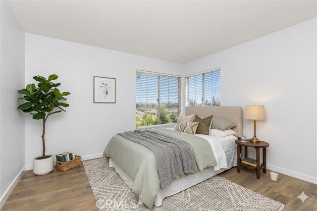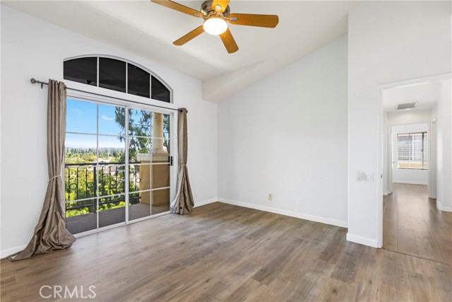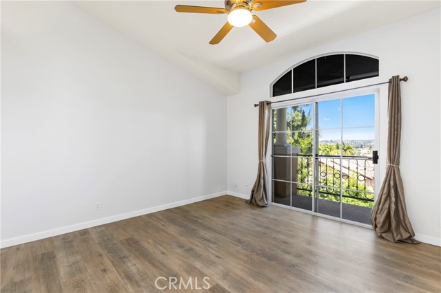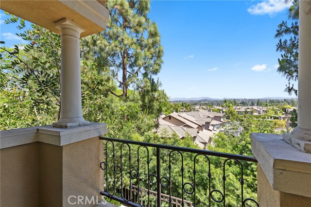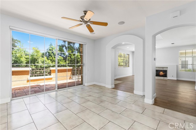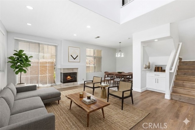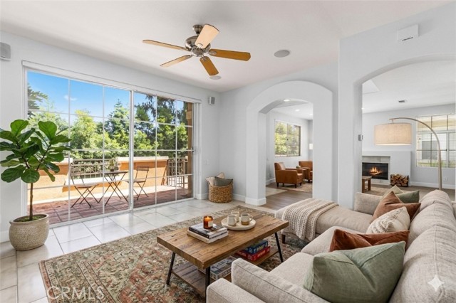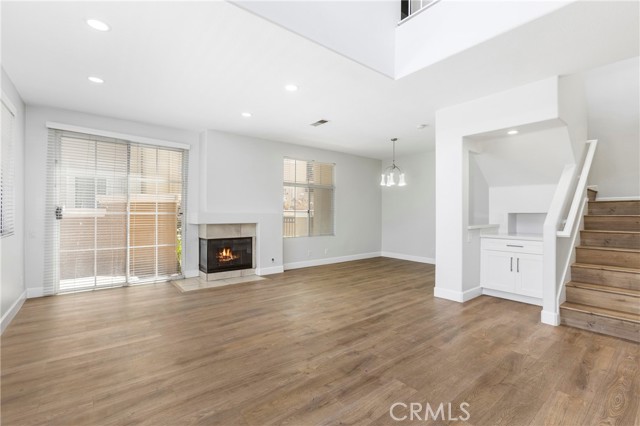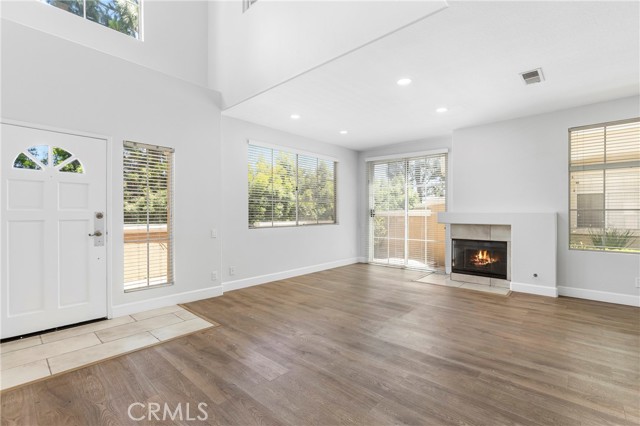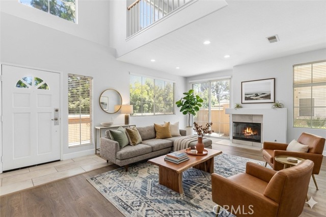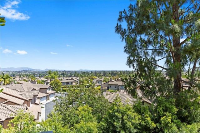 The tastefully updated kitchen features white shaker cabinetry, quartz countertops, stainless steel appliances including refrigerator, and opens seamlessly to the family room. The family room offers white tile flooring and sliding door access to the front yard, where mature trees provide privacy while still allowing a peaceful open-space setting. The rest of the house has vinyl flooring and no Carpet. A spacious living room with fireplace and adjoining dining area create an inviting layout for everyday living and entertaining. All three bedrooms are located upstairs. The primary suite is a true retreat, complete with a charming private balcony where you can relax, read a book, enjoy your favorite drink, and take in the beautiful city-light views. Secondary bedrooms also enjoy elevated views and natural light. Additional highlights include a convenient main-floor laundry room near the kitchen, direct access to the two-car garage through a solid pocket door, and a prime Aliso Viejo location just moments from Aliso Viejo Town Center, offering shopping, dining, Barnes & Noble, movie theater, and more. Located near highly rated schools, parks, trails, and major commuter routes, this home offers comfort, convenience, and a wonderful lifestyle in the heart of Aliso Viejo.