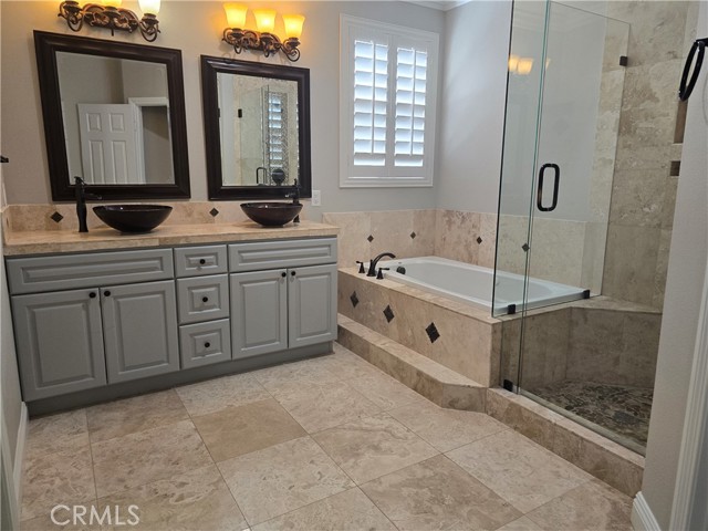 Primary Suite Large soaking tub,Dual sinks with vessel basins,Separate glass shower,Huge walk-in closet