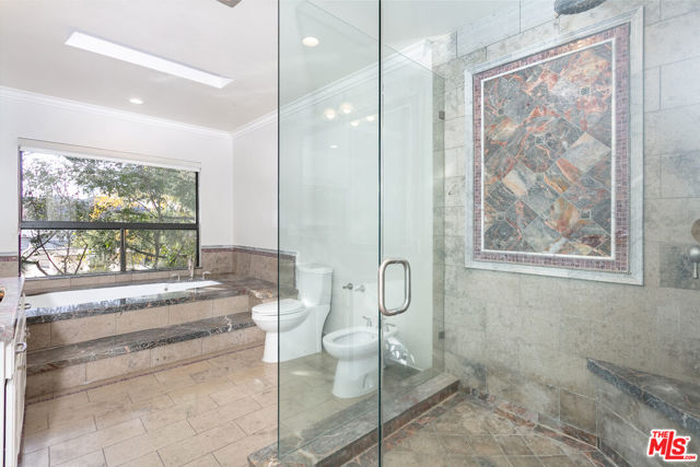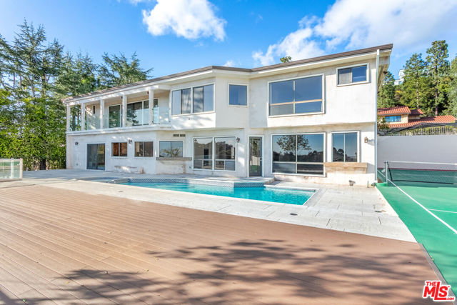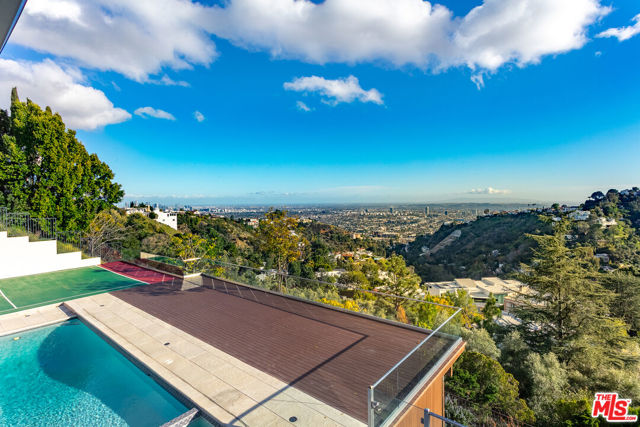 Discover the perfect blend of charm & functionality in this spacious Mt. Olympus home. With a seamless floor plan designed for effortless living & entertaining, this residence offers both comfort and everyday convenience. Each en-suite bedroom is of generous size, ensuring comfort & privacy throughout the home. Nearly every room is graced with spectacular, panoramic views of Downtown Los Angeles & Century City, creating a breathtaking backdrop to your daily life. The property features maid's quarters conveniently located near the laundry room, offering additional flexibility & convenience. A state-of-the-art 4-zone climate control system ensures optimal comfort, while solar panels keep energy costs impressively low. The recently upgraded backyard is a true oasis, boasting a spacious deck, a freshly re-plastered heated pool & ample room for relaxation or entertaining. For recreation enthusiasts, the property includes a private sports court, as well as a dedicated recreation room. The attached three-car garage provides plenty of parking & storage space, while the home's proximity to a local house of worship adds a unique touch of convenience. With unparalleled views, en suite rooms & an abundance of amenities, this property must be seen to be fully appreciated. Don't miss the opportunity to make this exceptional residence your next home!